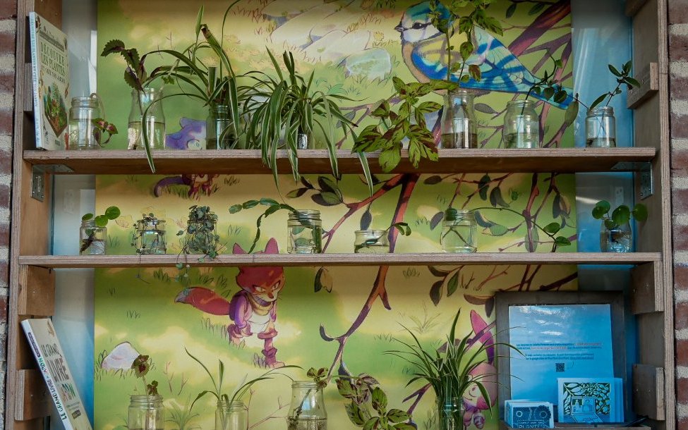 Vous souhaitez végétaliser votre intérieur, offrir une plante à un·e ami·e ou partager vos espèces préférées ? Cette bouturothèque est votre meilleur alliée ! Le principe est simple, venez avec une bouture et repartez avec une autre ! Pour simplifier le transport de ces jeunes pousses et la gestion de cette étagère foisonnante, merci de ne déposer que des boutures en eau (non en terre).